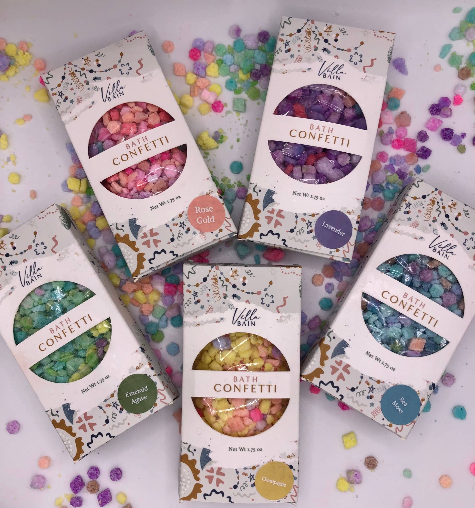 Throw some confetti around and celebrate with this fun bathtime treat. A perfect sized box full of fun colored bath fizz is waiting for you. Try one of our 5 colors/ fragrances or mix and match! Make bath time fun again. Each comes packaged in an individual box perfect for gifting or to display.  Perfect gift for celebrating an Engagement, Promotion, Graduation, Anniversary or any other Happy Time! Perfect addition for Gift Boxes or Care Packages. Includes one 1.75 ounce Confetti Box with display window Key Ingredients: Sodium Bicarbonate, Citric Acid, Sucrose, FD+C Colors, Polysorbate 80, and Fragrance Oil Offered in 5 Fragrance Options (Colors) These confetti fizz and color the water in multiple tones Handmade in Bowling Green, Kentucky