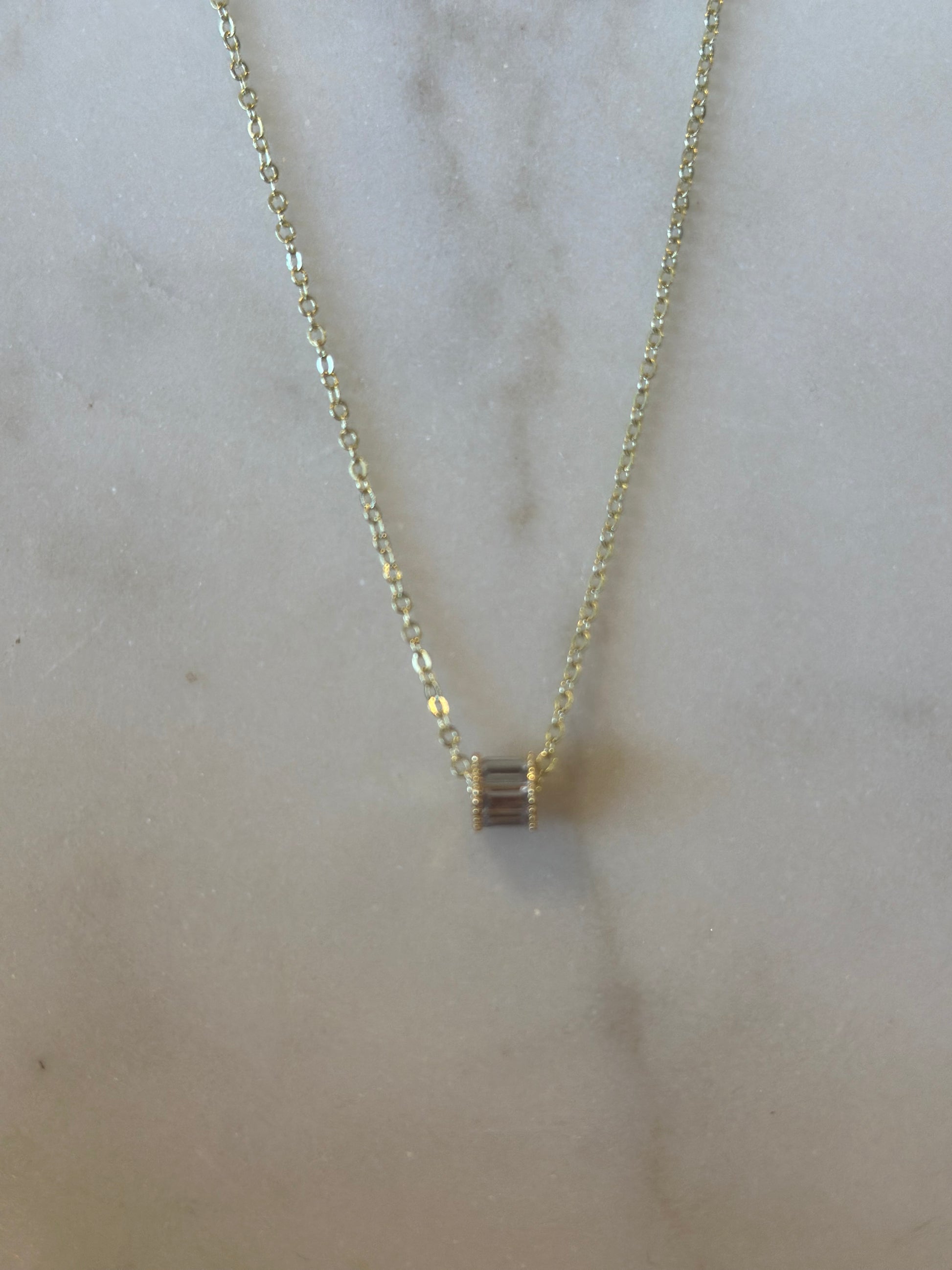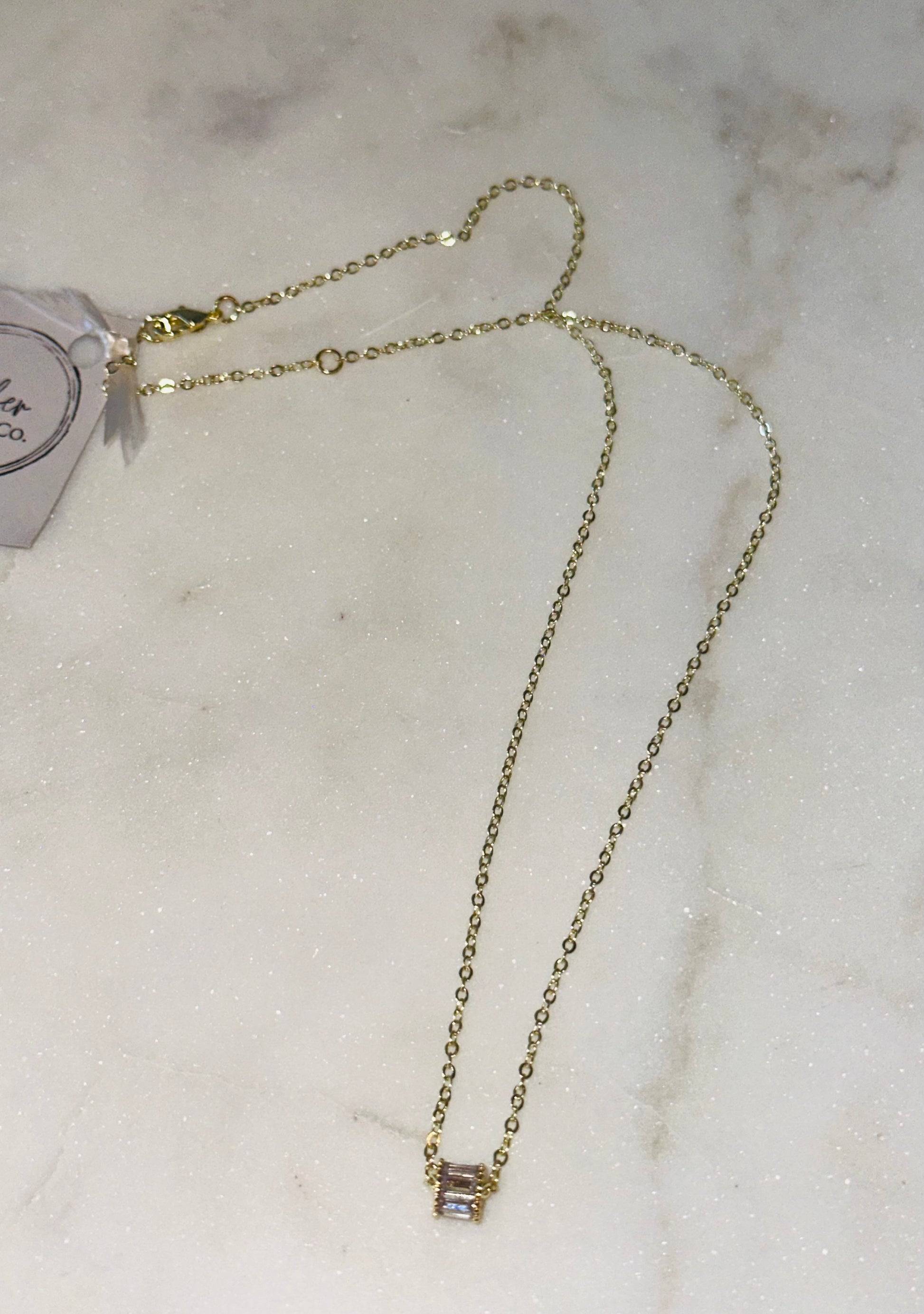 Enhance your neckline with our Dainty CZ Baguette Necklace. Featuring a sparkling CZ baguette, expertly set in 18k gold plating, this necklace can be adjusted from 16 to 18 inches for the perfect fit. Elevate any outfit with this elegant and versatile piece. Perfect layering piece!