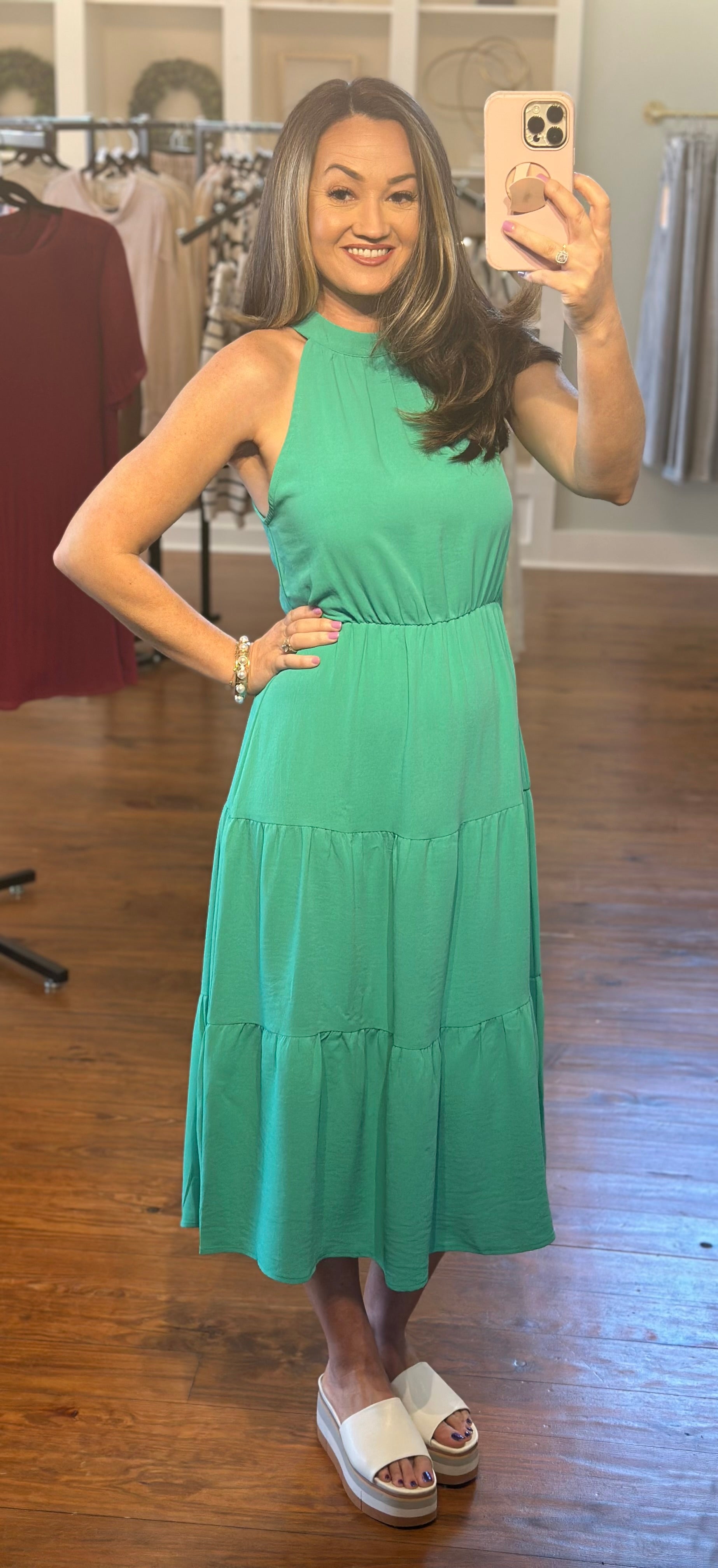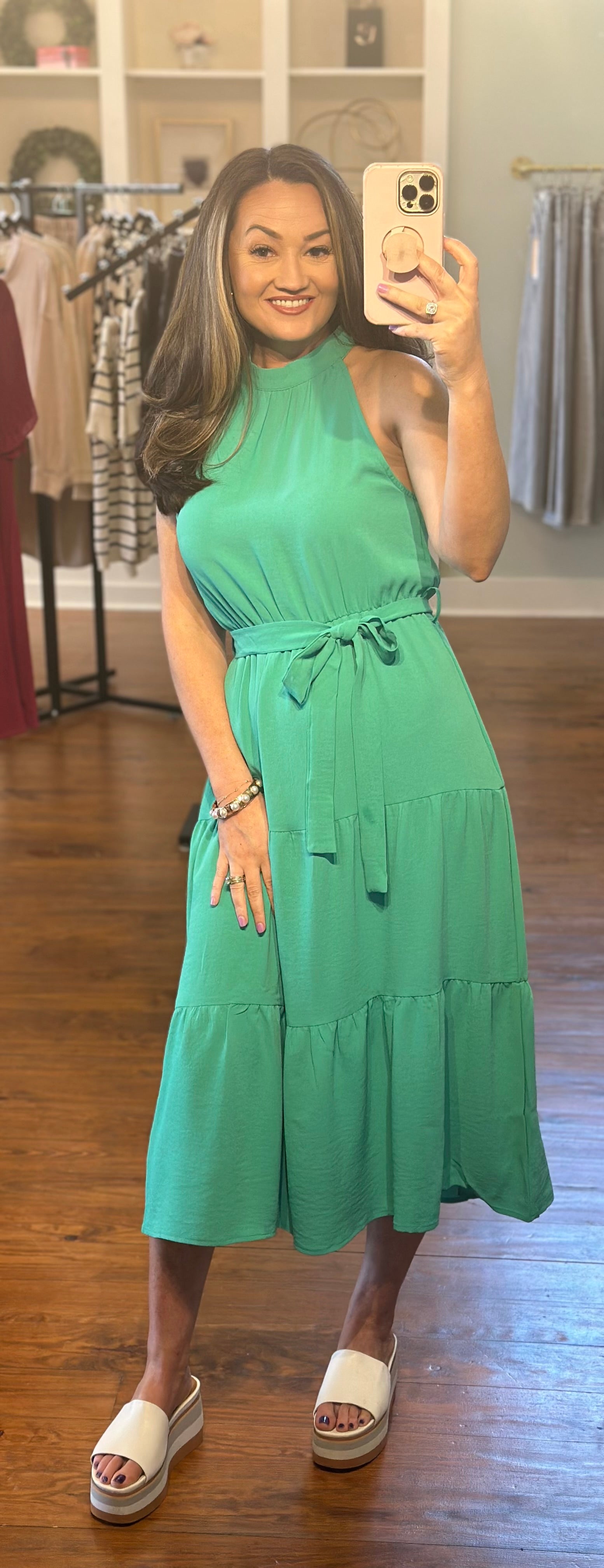 Halter Neck Belted Tiered Ruffle Midi Dress