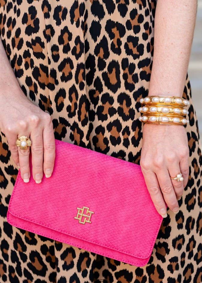 This bangle has a vintage gold color and is accented with pearls all the way around the bracelet. It wears like a bangle and stretches to fit most wrists.