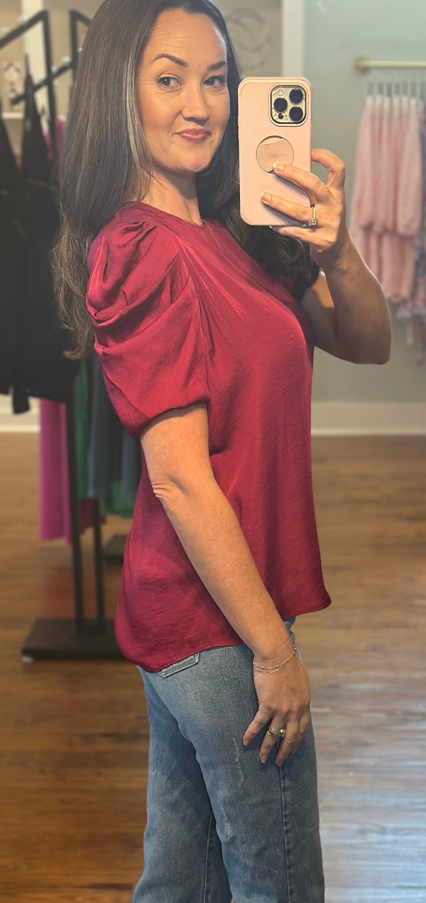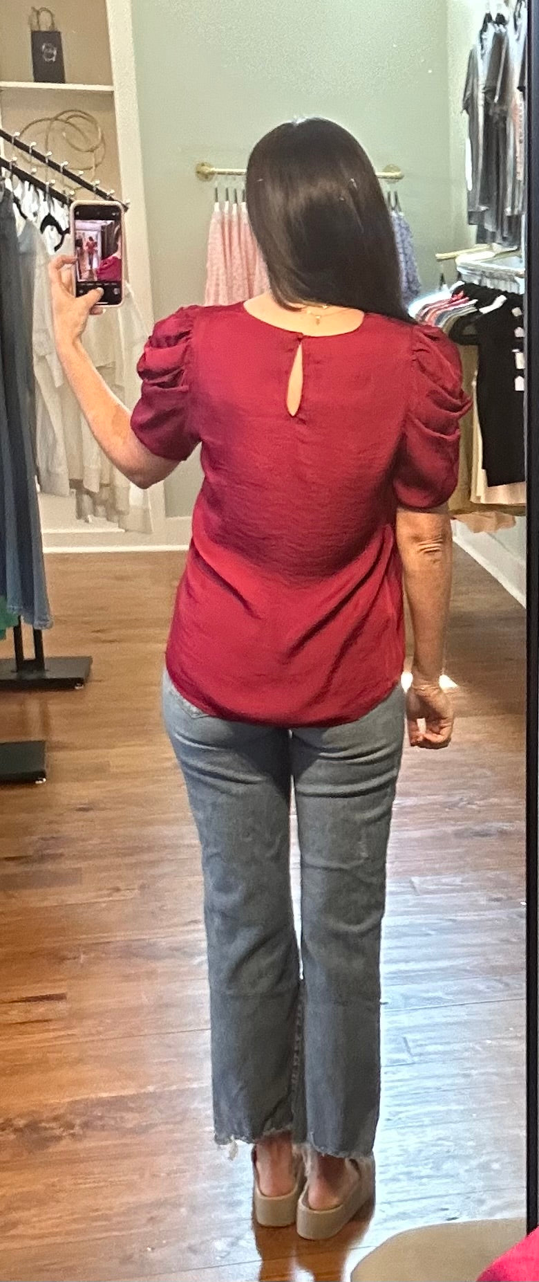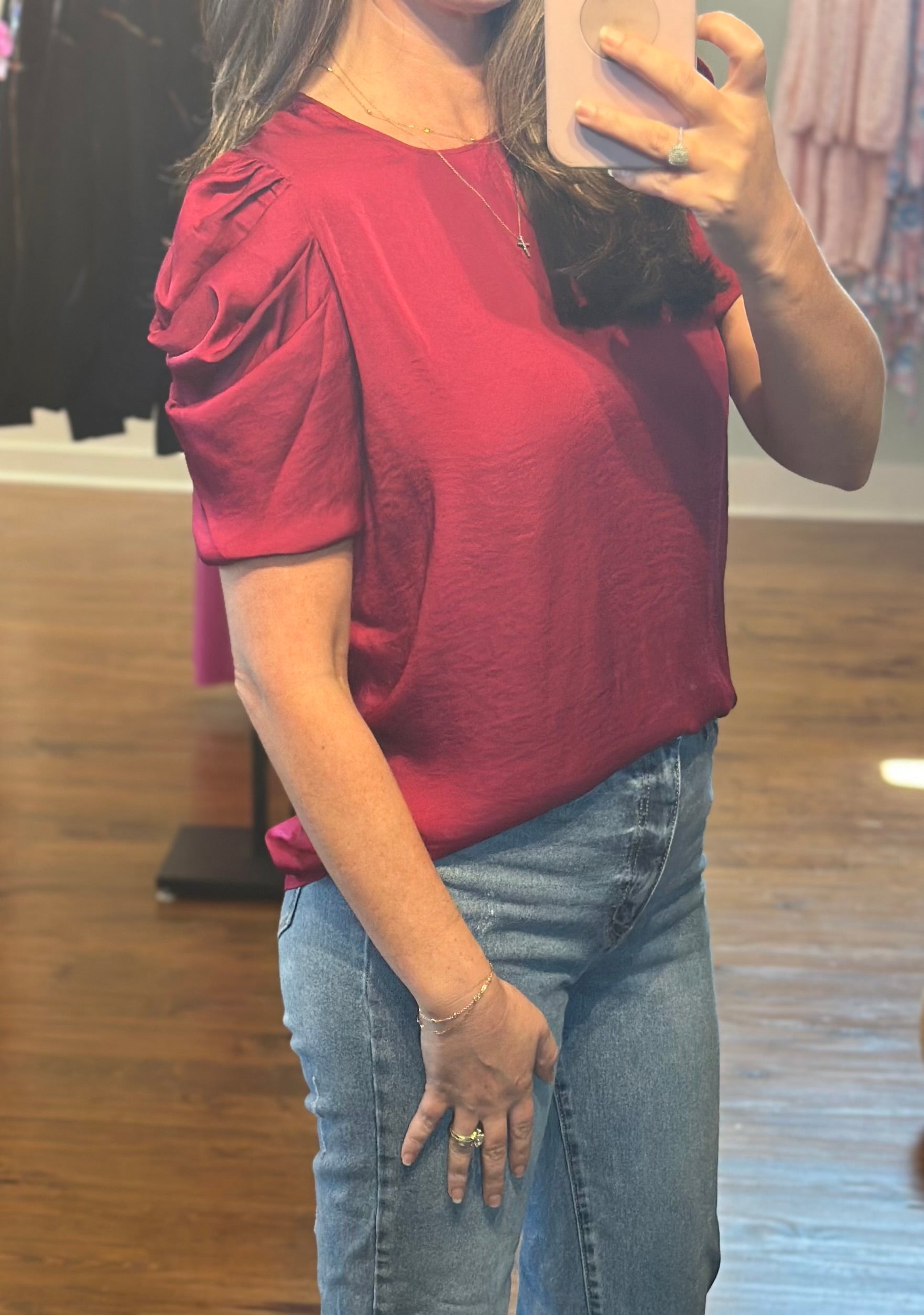 Upgrade your wardrobe with our Maroon Draped Sleeve Blouse. Stay sophisticated and stylish with the gracefully draped sleeves, creating a classy and elegant look. Perfect for any occasion, this blouse is a must-have for any fashion-forward individual.