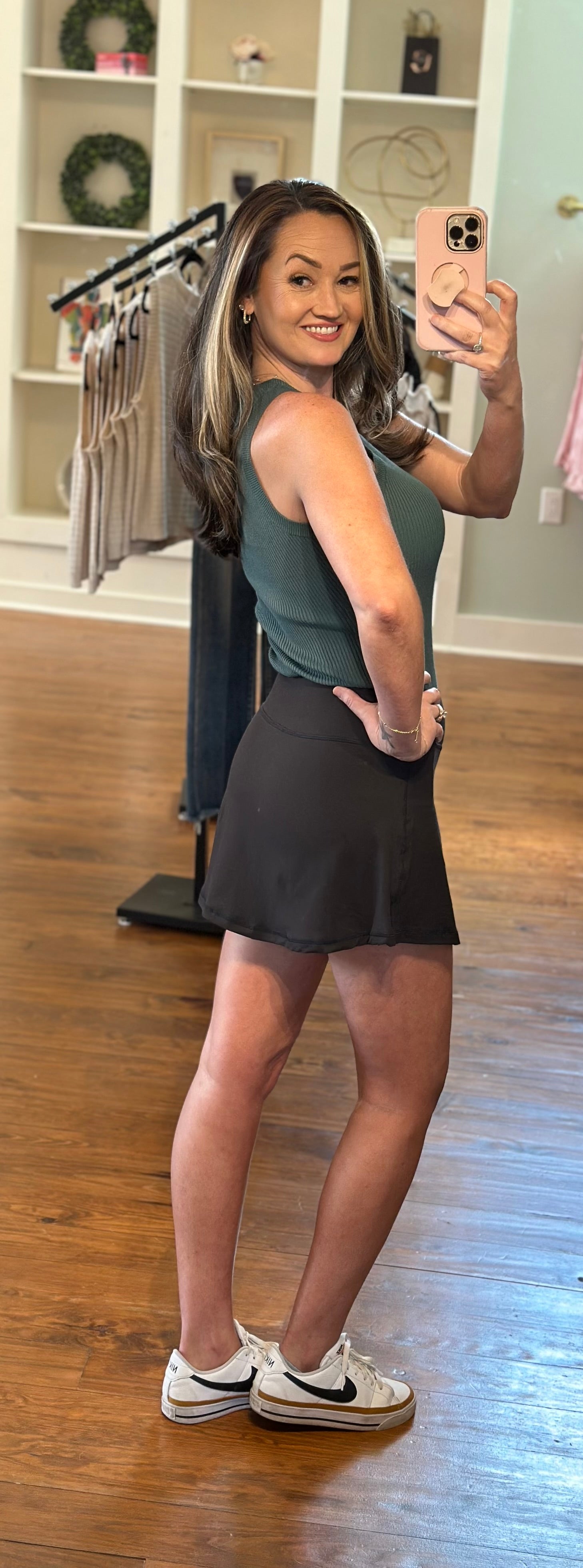 Experience ultimate comfort and functionality with the Mint Butter Soft Skort. Crafted from buttery soft stretch material, it offers a great fit that moves with you. The built-in side pocket in the shorts underneath provides convenient storage, while the perfect length ensures ease of movement. Ideal for athletic wear, athleisure, golf, tennis, weekend outings, and running errands, this skort combines style and practicality for your active lifestyle.
