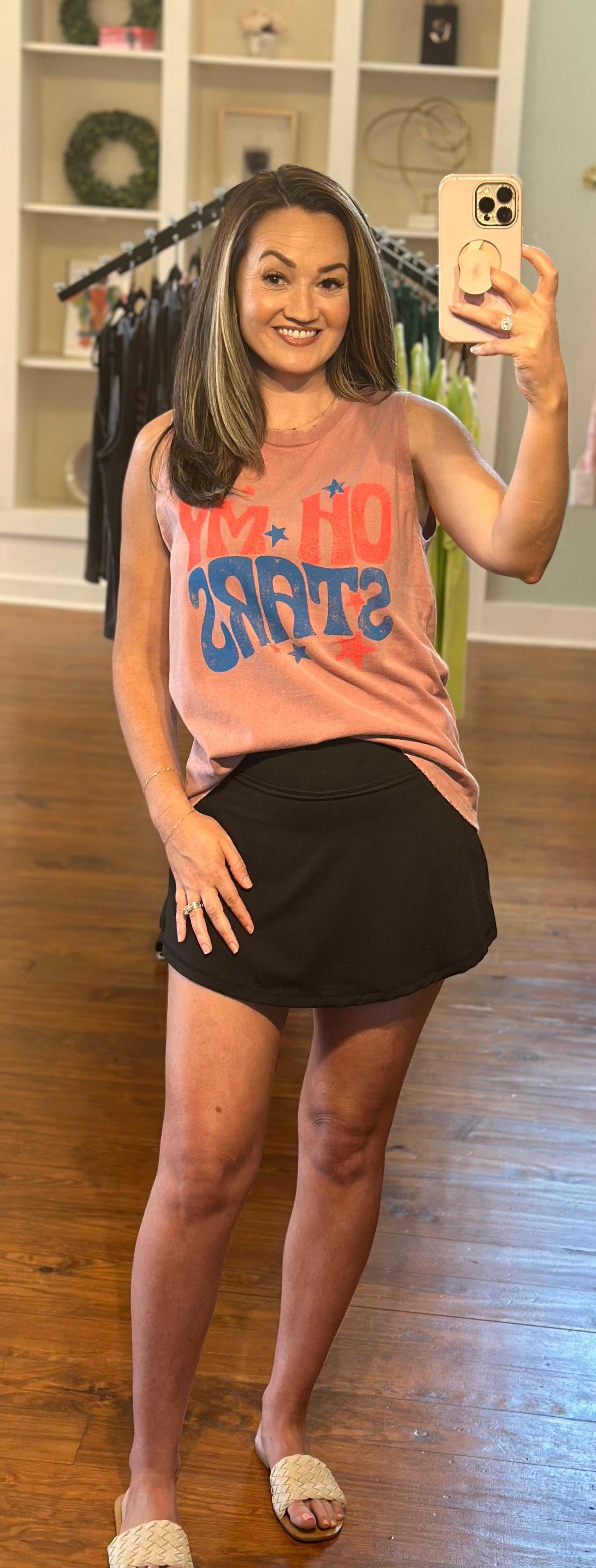Crafted from mineral-washed cotton, the Oh My Stars Patriotic Tank offers a soft, lived-in feel with a relaxed fit for all-day comfort. Embracing classic Americana style, it's perfect for showing your patriotic spirit in a subtle and stylish way.