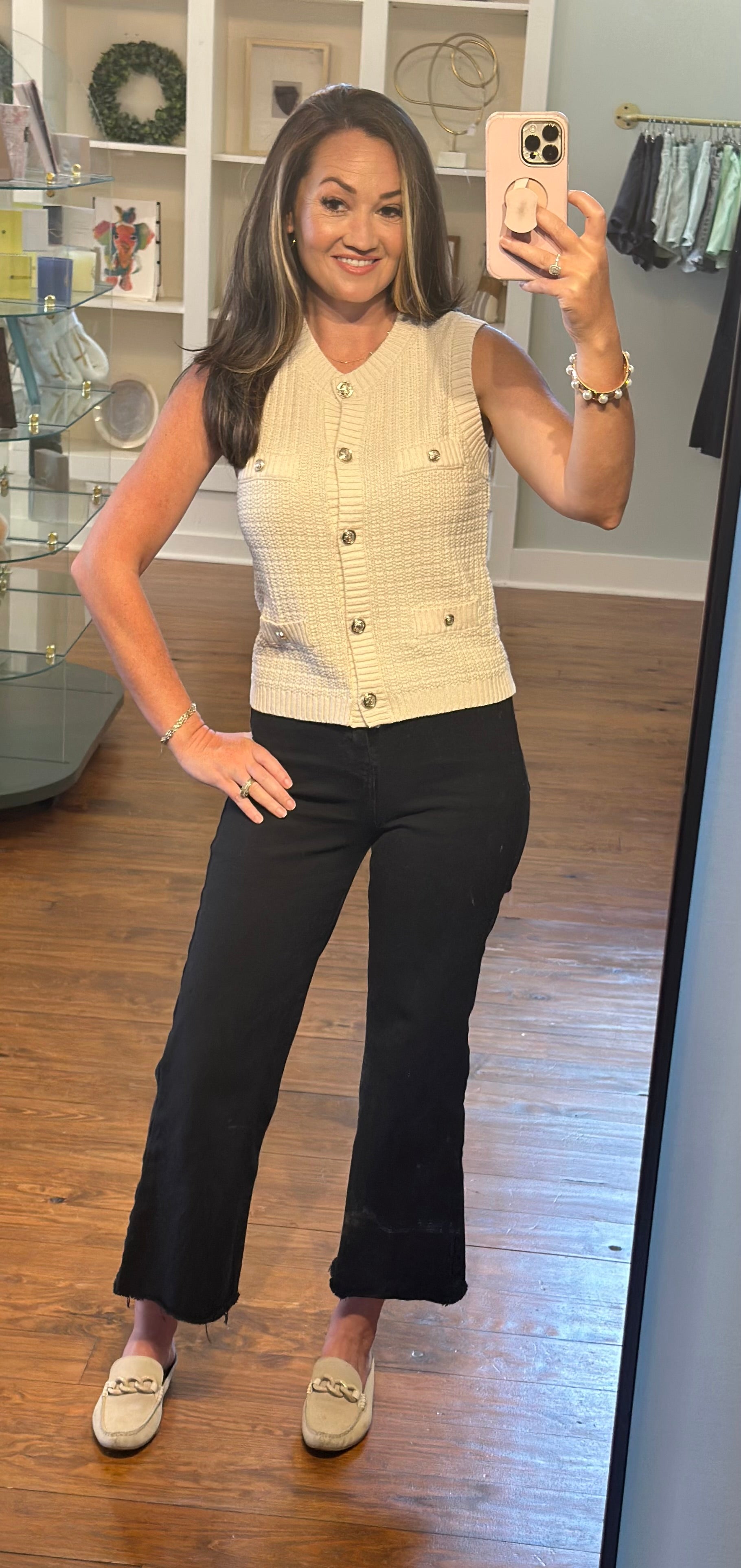 Sophisticated Charm Gold Button Sleeveless